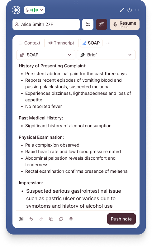 Heidi intelligently sifts through your patient visits, separating pertinent medical details from tangential conversations.